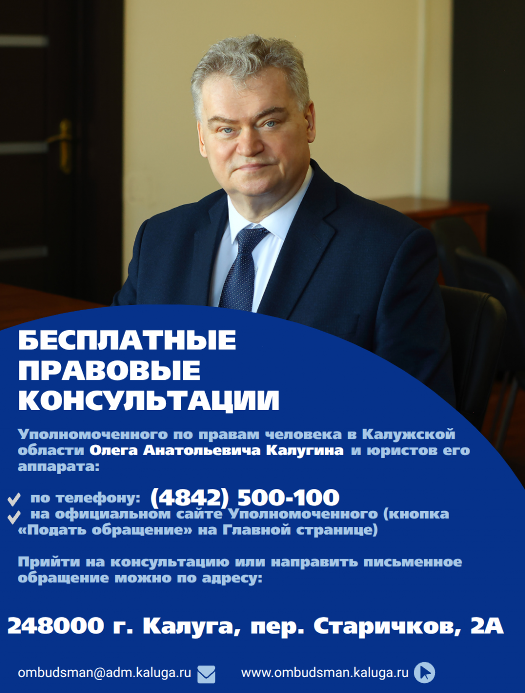 Прийти на консультацию или направить письменное обращение можно по адресу: 248000; г.Калуга, пер. Старичков, 2А, тел. 8/4842/500-100. Переходите на канал в МАХ: https://max.ru/id4027061745_gos/AZ1I5E43dYc