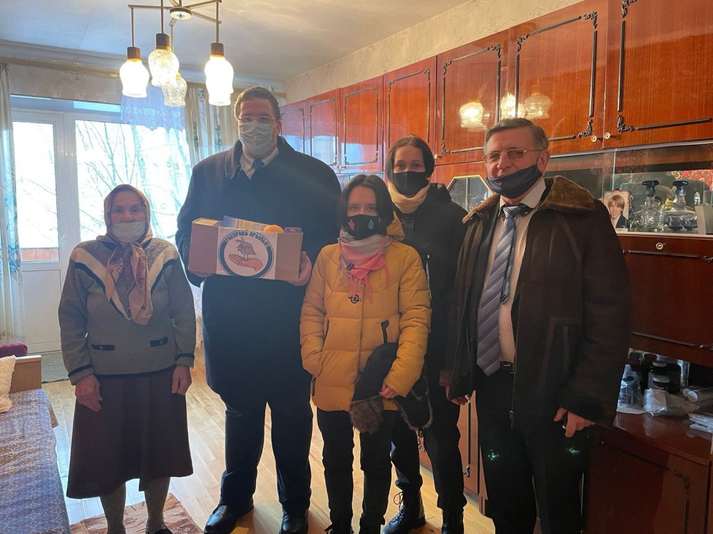 Малюшкину Валентину Семеновну и передали продуктовые наборы и подарки от нашего центра.