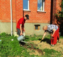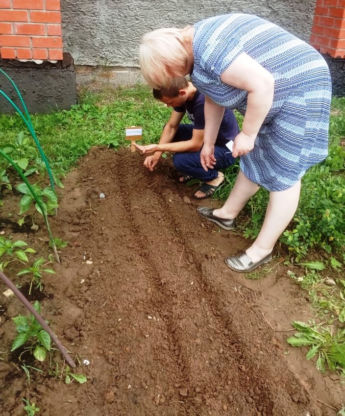 Выпускники продолжают развивать «огород у себя дома», расположенный на прилегающей территории социальных квартир нашего Центра, ухаживать за ранее посаженными растениями на участке: поливают и подкармливают их. Подготовили почву для посадки лекарственных растений, внесли комплексные удобрения. Именно здесь, на участке формируется отношение к земле, как к основному богатству страны, закладывается любовь к земле, к труду, воспитывается бережное отношение к растениям.