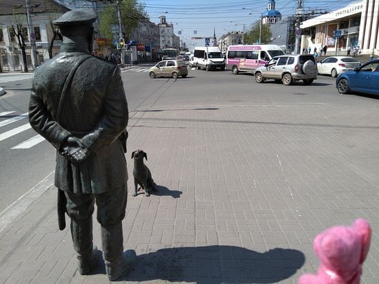 И конечно, нельзя обделить вниманием верного спутника городового – служебного пса, который сидит перед фигурой городового и преданно смотрит ему в глаза.