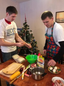 В преддверии Нового года проживающие социальной гостиницы учились готовить «крабовый рулет» - украшение новогоднего стола.