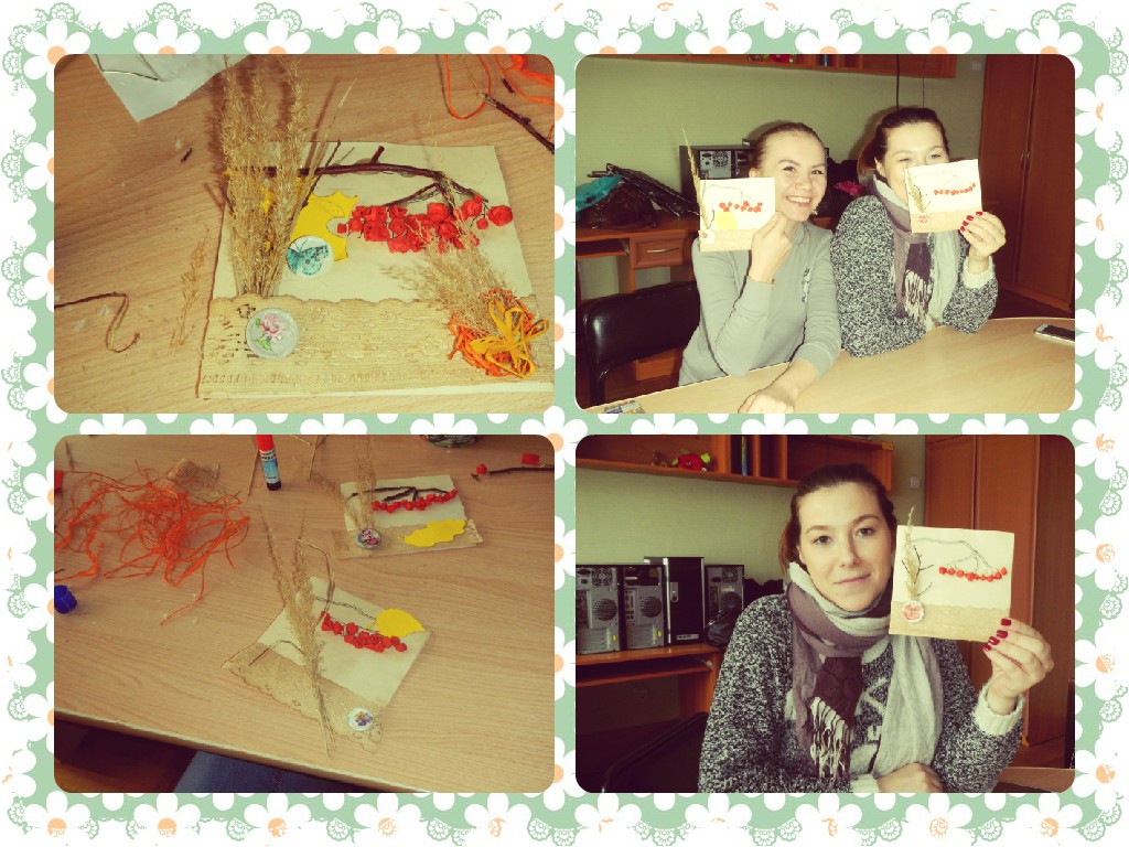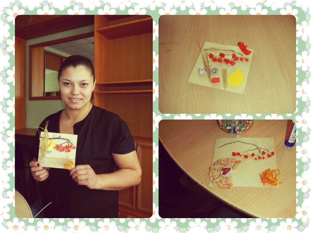 Молодые мамы: Вика Хромых, Полина Рзаева, Татьяна Куровская, Наталья Тимошкина, Ирина Александрова, Диана Ефремова, Яна Агеева, Ирина Бауэр, Аня Демина под руководством мастера сделали необыкновенные открытки или картины, в основе которых лежала тема «Поздняя осень».