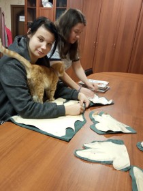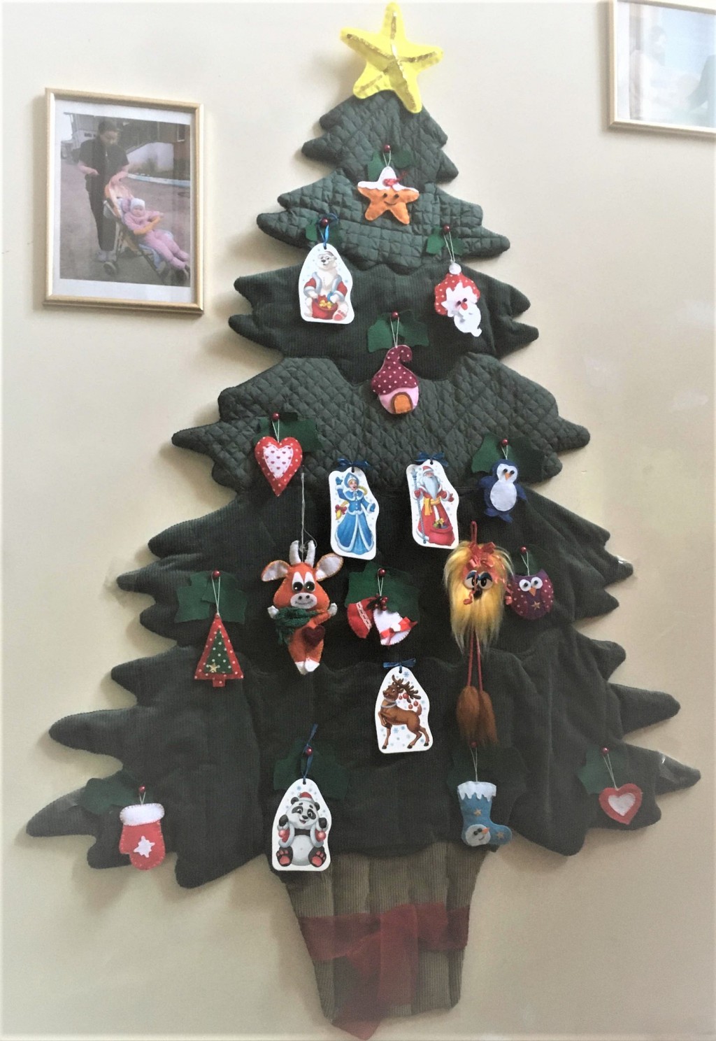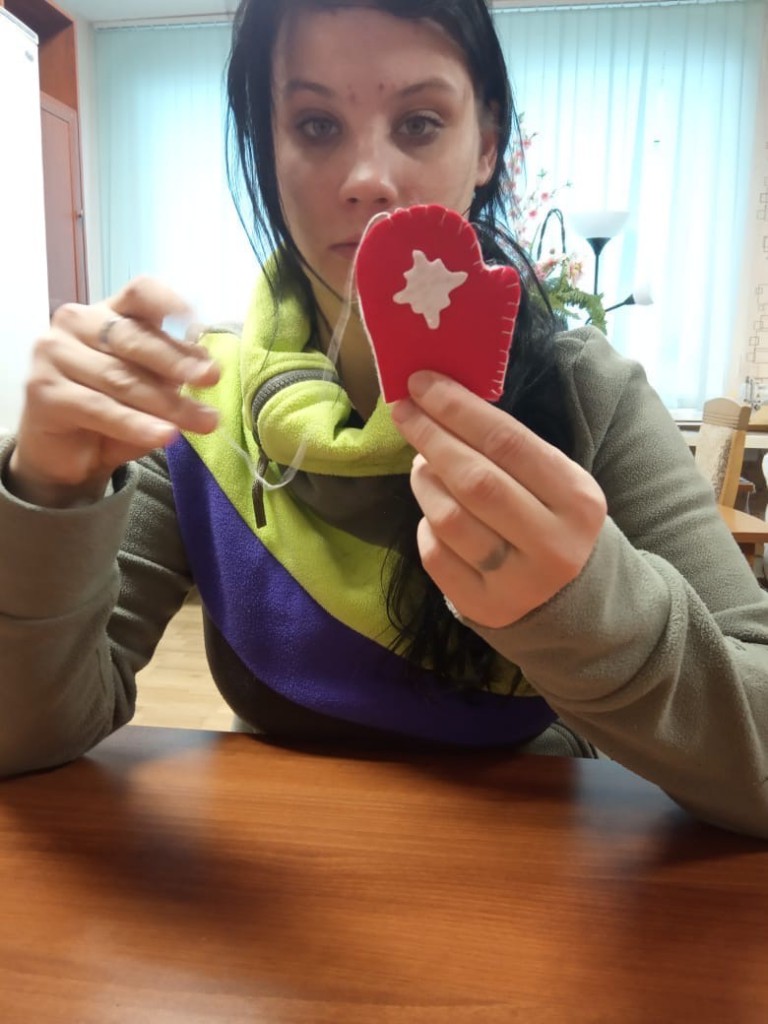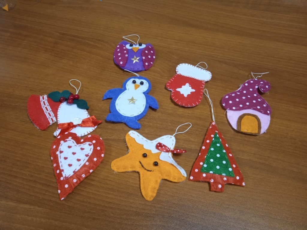 В нашей творческой мастерской специалист Виктория Стрелец проделала длительную, кропотливую работу с мастерицами-участницами проекта «Молодая семья». Девушки изготовили текстильную елку. Работа длилась на протяжении четырех мастер-классов. Сначала придумали какая ёлка должна быть. Нарисовали ее, вырезали детали. Наложили на ткань разной текстуры и вырезали. На каждую деталь ёлки пришили с изнаночной стороны синтепон, а затем сшили детали. Наложили сшитые детали на отрез такни и вырезали изнаночную сторону ёлки. Выкроили подставку для ёлки и пришили к ней бант. Прострочили детали ёлки с изнаночной стороны, вывернули на лицевую сторону. Последние штрихи изготовления нашей ёлки: из фетра вырезали листочки и пришили их вместе с бусинами с лицевой стороны ёлки. Новогодняя ёлка готова. Осталось ее украсить новогодними игрушками. Для этого взяли разноцветный фетр, ленты, бусины, звездочки. Нарисовали игрушки, используя свою фантазию. Бумажные выкройки наложили на фетр и вырезали – заготовки готовы. Также вырезали фигурки из синтепона, чтобы игрушки смотрелись объемными. Сшили, с пришитыми петельками, за которые будем вешать их на ёлку. Игрушки можно украсить снежинками, бусинами, лентами. Готово! Яркие веселые игрушки, сделанные своими руками, будут радовать ас на нашей ёлочке.