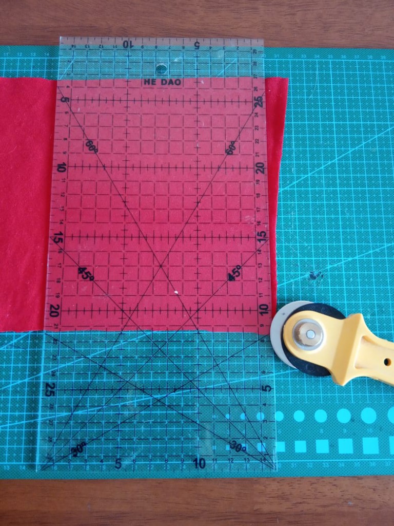 Шаг 3. Складываем квадраты пополам. Прошиваем, в длинну, отступая от края 0,5 -0,7 см. Складываем прямоугольники пополам, швом внутрь.