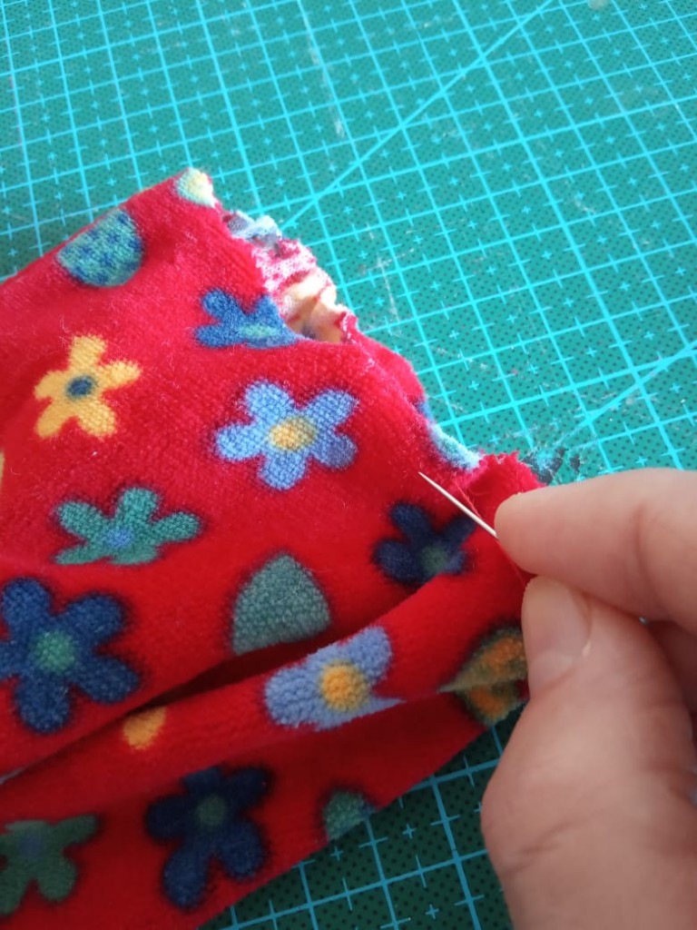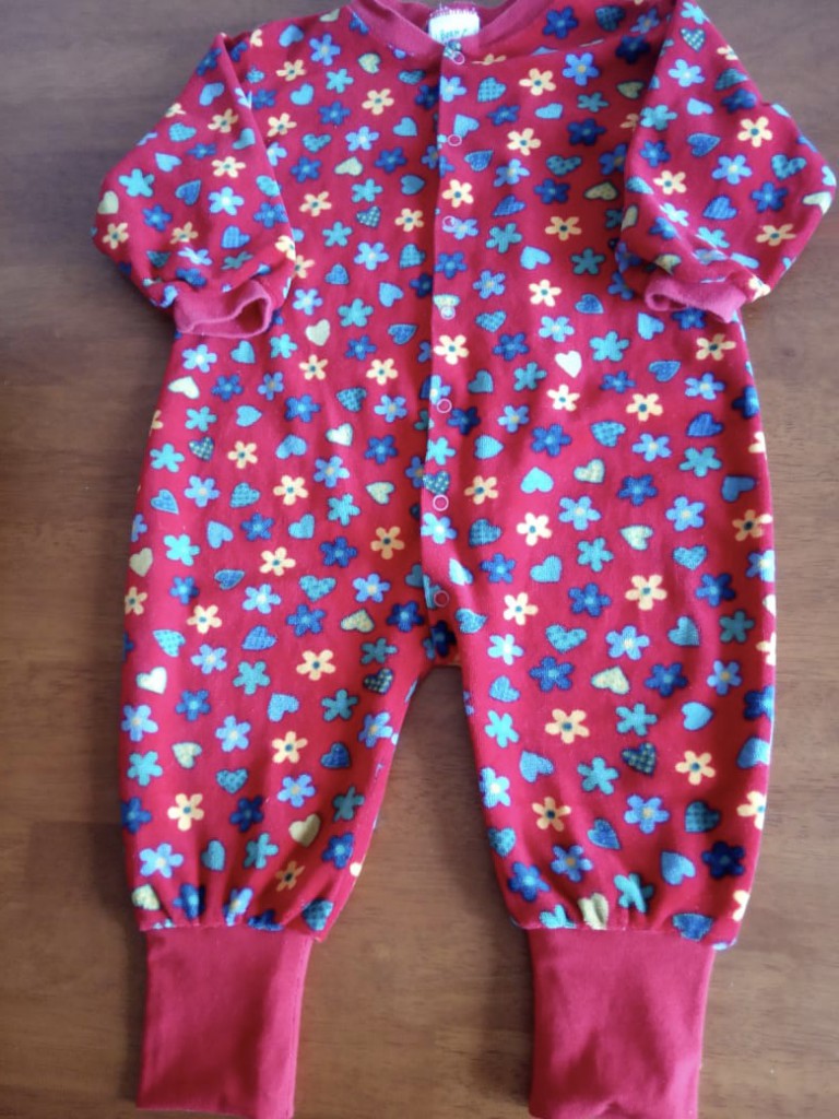 Шаг 6. Обметочным швом стачиваем вместе штанину и манжет. При этом изделие нужно немного растягивать. Выворачиваем изделие. В любимом слипике можно ещё спать несколько месяцев.