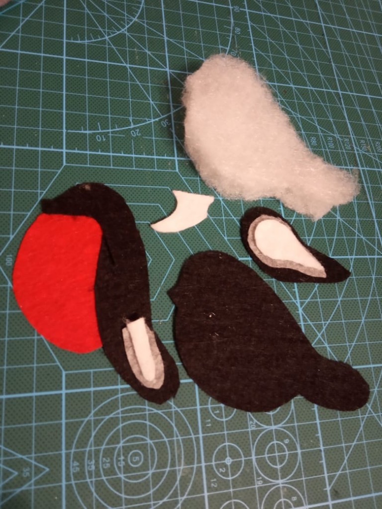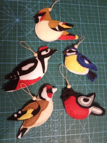 Для мастер-класса понадобился разноцветный фетр, бусинки для глаз, синтепон, ножницы, нитки и иголки. Нарисовали птицу. Можно взять шаблон в интернете, можно самим нарисовать по фотографиям. Вырезали сначала бумажную выкройку. Наложили на фетр, который у нас был снизу и вырезали силуэт птицы. Затем разрезали на мелкие детали и началась мелкая, кропотливая работа. Сшили и пришили детали головы, хвоста, крыльев к готовой передней части птицы. Вырезали из синтепона силуэт птицы и сшили все детали вместе. На головке пришили веревочку для того, чтобы можно было повесить нашу игрушку.