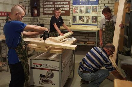 02.07.2019 г. в рамках реализации Комплекса мер, мастерской с отделением «Столярное дело» в Центре «Расправь крылья!» прошло очередное занятие. Цель занятий - привить интерес к столярному делу и выработать навыки, необходимые при самостоятельном проживании (ремонт и изготовление мебели). По просьбе участников проекта «Спорт и я - жизнь моя!» был изготовлен тренировочный стенд, что показывает взаимосвязь всех проектов и направлений для адаптации выпускников.