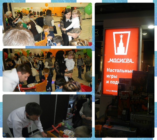 Однажды, мы с молодыми мамами, пошли на ярмарку вакансий и увидели там необыкновенную кампанию «Мосигра». Около их стенда толпились взрослые с детишками, которые с таким азартом рассматривали все выставленные игрушки. Заинтересовалась и я. Пришла к ним в магазин и пригласила к нам на праздник День Матери в фитнес-центр «Атмосфера» с мастер-классом.