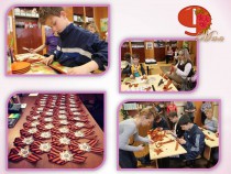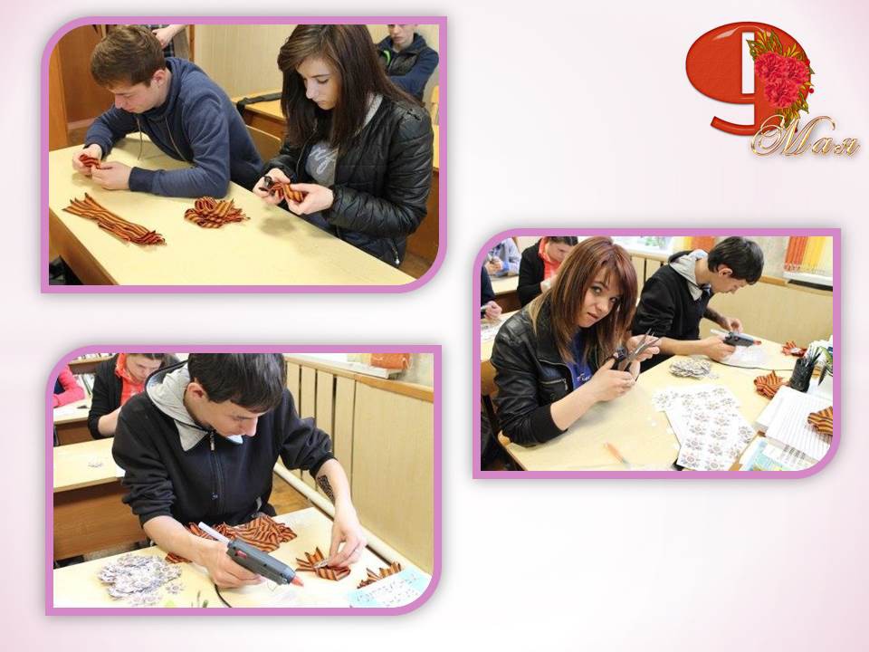 К Акции ребята начали готовиться задолго до этого. Было решено изготовить символ Победы из георгиевской ленты, с закрепленным на ней орденом Отечественной войны, таких символов мы изготовили почти пятьсот штук.
