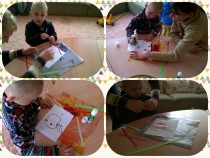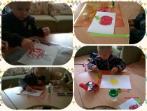 9 и 10 октября 2015 года прошли очередные развивающие занятия для мам с детьми школы «Мы вместе», на которые пришли Тимошкина Наташа с сыном Даней, Ломакина Олеся с сыном Максимом. К нам присоединился и Кирюша Александров, который очень настороженно воспринимал все происходящее в игровой комнате. Конечно, его впечатлили игрушки, но он внимательно наблюдал за ребятами, которые пытались нарисовать радостное солнышко, сделать яблочко методом «рваная бумага».