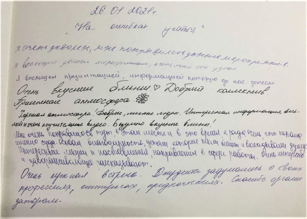 В рамках проекта «Достойная работа» и оказания социально-трудовых услуг гражданам из числа детей-сирот продолжаем профориентационную работу, направленную на формирование необходимых знаний в области профессионального самоопределения. Сегодня в Центр постинтернатного сопровождения «Расправь крылья!» прошла встреча со студентами Калужского техникума электронных приборов, индустриально-педагогического колледжа, колледжа народного хозяйства и природообустройства, коммунально-строительного техникума им. И.К. Ципулина, региональным координатором антинаркотического направления Волонтерской Роты ББ КО Андрейчук Антоном и его активистами, и Калужскими писателями литературного клуба "Галерея" Ильей Алексеевым, Валерием Ивановым. Все гости приняли участие в мероприятии: «На ошибках учатся», посвященном теме профориентации и профессиональному самоопределению. В мероприятие вошли теоретические понятия о профессии, профессиональной деятельности, профессиональном образовании, этапы поиска работы и ошибки, которые могут возникать на каждом из них и практические упражнение в игровой форме, психологическое тестирование для определения типа мышления, определения профессии или специальности, упражнения на заблуждения представления о профессии. Гости остались довольны, выразили свое мнение в книге отзывов, поблагодарив организаторов мероприятия, заместителя директора по общим вопросам Елену Ростиславовну Хорошилову, специалистов отделения комплексной помощи и социального сопровождения Людмилу Юрьевну Тюрину и Елену Алексеевну Соколову, и проживающих в социальной гостинице Центра ребят, которые приготовили на мастер-классе для гостей вкуснейшие блинчики.