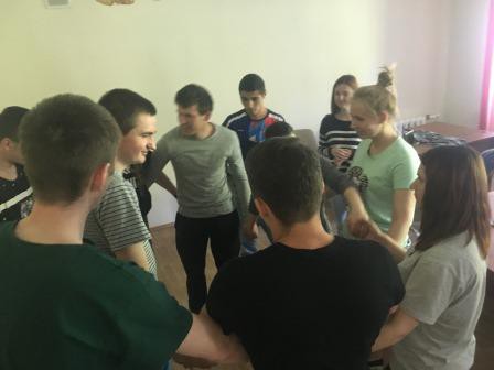 25.05.2018 года в социальной гостинице Центра «Расправь крылья!» прошла встреча проживающих в социальной гостинице с волонтёрами института социальных отношений КГУ им. К.Э. Циолковского Потаповой Валентиной и Шулепиной Анастасией. Встреча проходила в формате тренинга, «Мы вместе – это здорово!», целью которого было формирование командного духа, развитие ответственности и вклада каждого участника в решение общих задач, как единой команды.