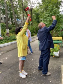 Волонтёры клуба выпускников Вместе совместно с волонтёрами НКО "Перекрёсток " вручили цветы и сладкий набор родственникам с пожеланиями здоровья и мира во всём мире ???? ????Сложно представить современной молодёжи насколько дорого и ценно сегодня то, что совершил для нас этот замечательный человек 77 лет назад. Так пусть мирное голубое небо продолжают радовать нас, а яркое солнце согревать своим теплом.
