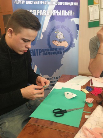 1 и 2 марта 2018 года специалисты по социальной работе Центра постинтернатного сопровождения « Расправь крылья!» Тамара Афанасьева и Анастасия Родина с ребятами, проживающими в социальной гостинице, провели очередное плановые занятия по дополнительной профориентационной подготовке, где приступили к изготовлению подарков к празднику 8 марта.