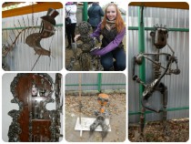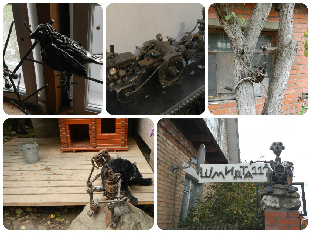 Во дворе дома также разместилась часть экспозиции, изготовленная из болтов, гаек, шурупов и других предметов, найденных в пунктах скупки металла.