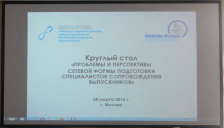 28 марта 2016 года в Москве состоялся круглый стол «ПРОБЛЕМЫ И ПЕРСПЕКТИВЫ СЕТЕВОЙ ФОРМЫ ПОДГОТОВКИ СПЕЦИАЛИСТОВ СОПРОВОЖДЕНИЯ ВЫПУСКНИКОВ», подготовленный Институтом изучения детства, семьи и воспитания Российской академии образования и Благотворительный фондом социальной помощи детям «Расправь крылья!»