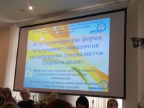 Тема выступления: «Клуб кураторов как форма непрерывного повышения квалификации специалистов сопровождения» появилась не случайно. Клуб кураторов является интересной формой работы. Материал преподносится просто и понятно, неясности и вопросы тут же разбираются и устраняются. После общения возникают позитивные чувства, уверенность в правильности избранного пути и осознание того, что на этом пути мы не одни и рядом не случайные люди, а профессионалы в своей области, открытые для дискуссий и всегда готовые оказать посильную помощь.