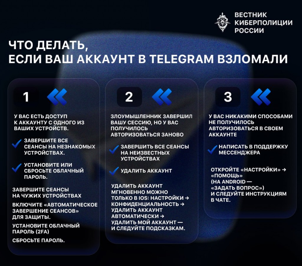 Противодействие киберпреступности. часть 1. Главная Новости Противодействие киберпреступности. часть 1. 15.12.2025 Противодействие киберпреступности. Что делать, если ваш аккаунт взломали или вы сдали аккаунт в аренду мошенникам? Следуйте инструкциям, разработанным УМВД России по Калужской области. Все профилактические материалы:disk.yandex.ru/d/zEyo9Qu3YlBgMA Галерея Фото №1 Фото №1 Фото №2 Фото №2 Фото №3 Фото №3 Фото №4 Фото №4 Фото №5 Фото №5 Фото №6 Фото №6 Фото №7 Фото №7 Фото №8 Фото №8 Фото №9 Фото №9 Фото №10 Фото №10 Фото №11 Фото №11