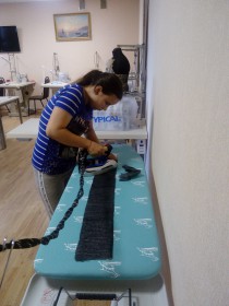 Молодая мама готовится к осени. На первом месте поставлена задача - дошить пальто! Большая ответственность возложена на нашу выпускницу. Благодаря желанию и усидчивости работа движется к завершению. Скоро мы увидим готовое изделие!