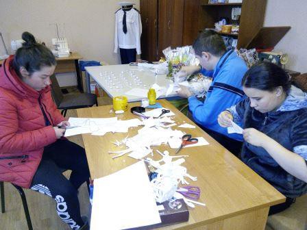 На базе Центра постинтернатного сопровождения "Расправь крылья!" продолжает свою работу "Творческая и швейная мастерская". Под руководством Натальи Головид проведены мастер-классы по подготовке к Новогодним праздникам. Выпускники с интересом и желанием делают поделки своими руками и украшают свои комнаты. Целью проведения мастер-классов является формирование знаний и умения к творческому мышлению и красоте.