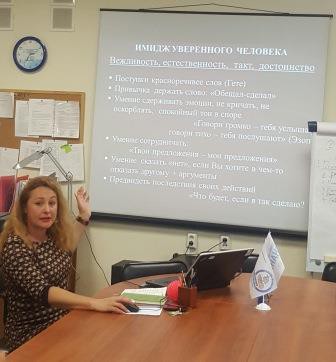 На занятии выпускники узнали факторы, способствующие формированию благоприятного имиджа делового человека; проведена диагностика самооценки; психологом даны рекомендации и коррекционные упражнения на формирование позитивной оценки и уверенного поведения.