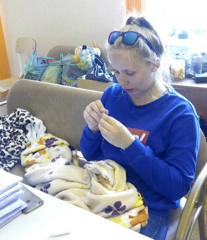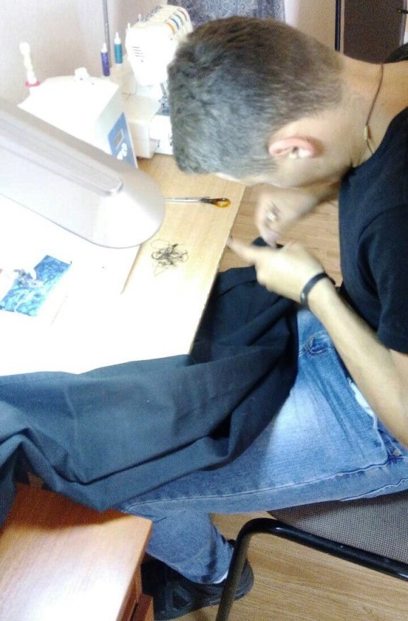 В мастерской также ребята своими руками ремонтируют свою одежду.