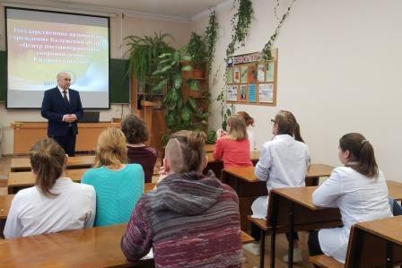 16.01.2019 года в рамках соглашения о сотрудничестве и взаимодействии, для обеспечения взаимодействия сторон по постинтернатному сопровождению, защите прав и законных интересов детей-сирот, детей, оставшихся без попечения родителей, и лиц из их числа (далее - Выпускники), а также обмену информацией о выпускниках, обучающихся в образовательной организации, состоялся выезд в ГАПОУ КО «Калужский базовый медицинский колледж».