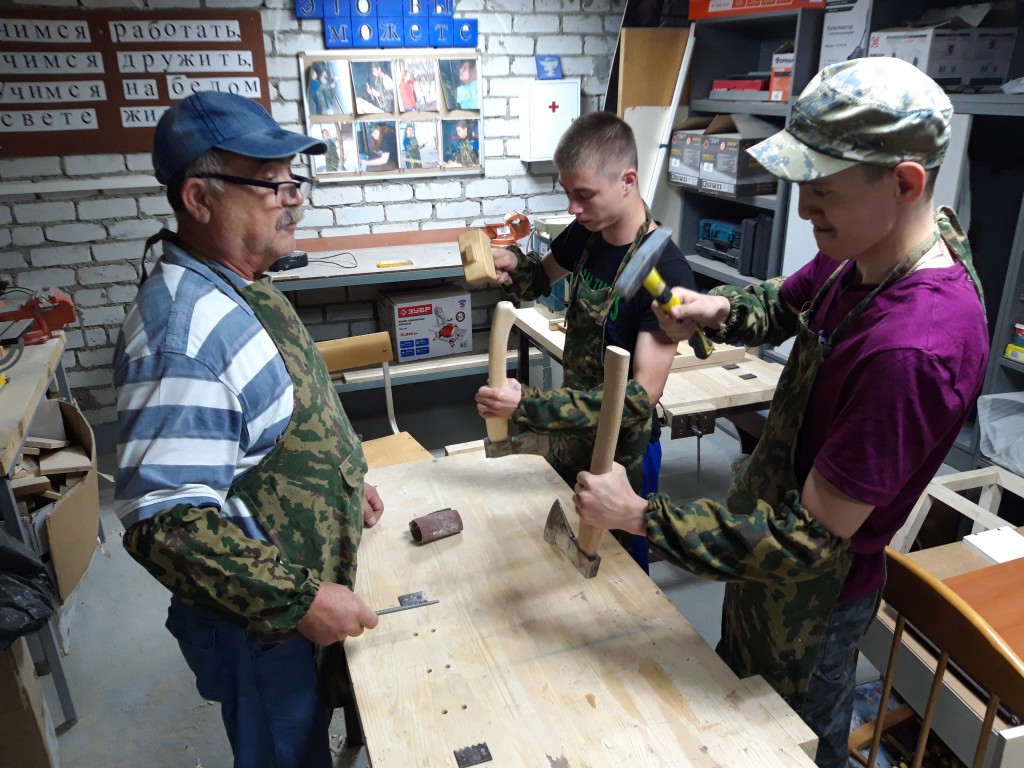 В рамках программы по предпрофессиональной подготовке «Доступно и практично» по направлению «Столярное и слесарное дело» проведено занятие по теме: «Ремонт столярного инструмента». Практическое задание: изготовление топорища и правильная насадка на топор. В результате практического занятия было изготовлено два топора.