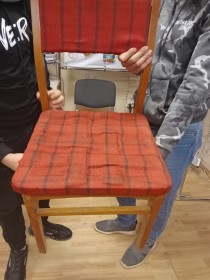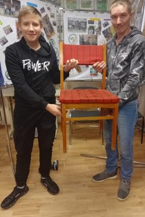 Студенты СПОУ г Калуги и К. О. из числа детей сирот совместно с сотрудниками починили стул и двери.