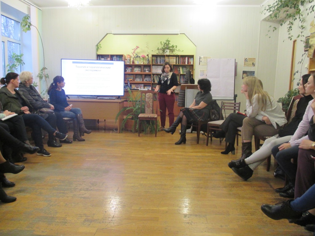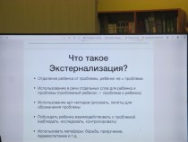 Жуйкова Екатерина Борисовна - клинический психолог, семейный психотерапевт со стажем работы в Московской психиатрической клинике – провела блестящий мастер-класс по профилактической и коррекционной работе с детьми, имеющими травматический опыт в семье (кровной, приемной). Участникам была представлена прекрасная презентация с теоретическими аспектами: «Нарушения психического развития», «Принципы коррекционно-профилактической работы с подростками с нарушениями в поведении». Главной целью мероприятия являлось обучение специалистов применению принципа экстернализации в развитии ребенка из категории сирот и оставшихся без попечения родителей. Принцип заключается в том, что необходимо разделять личность ребенка и его поведение - «есть личность и есть проблема». Иными словами, «не ребенок плохой, а его поступки плохие». Задача педагога - бороться не с ребенком, а с его проблемой. Например, если взрослый хочет изменить подростка, надо использовать метод сотрудничества: «Давай попробуем вместе справиться с твоим поведением» (агрессивностью, импульсивностью, ленью).