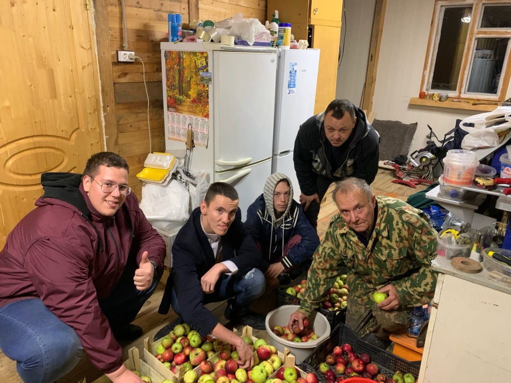 Студенты СПОУ из числа детей-сирот приехали к нашему доброму другу и наставнику Алексею Тимофеевичу Гунько, на даче у которого собрали и отсортировали несколько сортов яблок и вручили юбилейную грамоту в благодарность за многолетнее плодотворное сотрудничество и активное участие в мероприятиях центра.