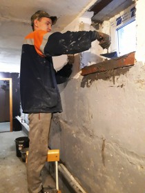 Для изучения данной темы были применены гидроизоляционные материалы в виде мастики, кисти и валики, растворители, ветошь, щетки и веники для подготовки поверхности к покрытию мастикой. Проведена зачистка и ремонт колон фасада здания. Практическое занятие: «Ремонт колон фасада здания Центра. Покрытие мастичными материалами». В повышении предпрофессиональной подготовки приняли участие молодые люди, проживающие в тренировочных социальных квартирах нашего Центра.