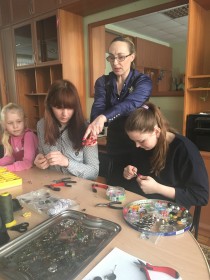В Центре постинтернатного сопровождения «Расправь крылья!» продолжены занятия по дополнительной профессиональной подготовке выпускников, ставшие уже традиционными по курсу «Мастер по изготовлению бижутерии ручной работы». Одно из них состоялось 01.02.2018 г. Ребята были увлечены созданием красивых серег с применением различных технологий. Овладением специальными профессиональными навыками позволит делать оригинальные, неординарные, эксклюзивные украшения не только для себя и своих близких, но и в будущем может стать профессией, приносящей хороший доход.