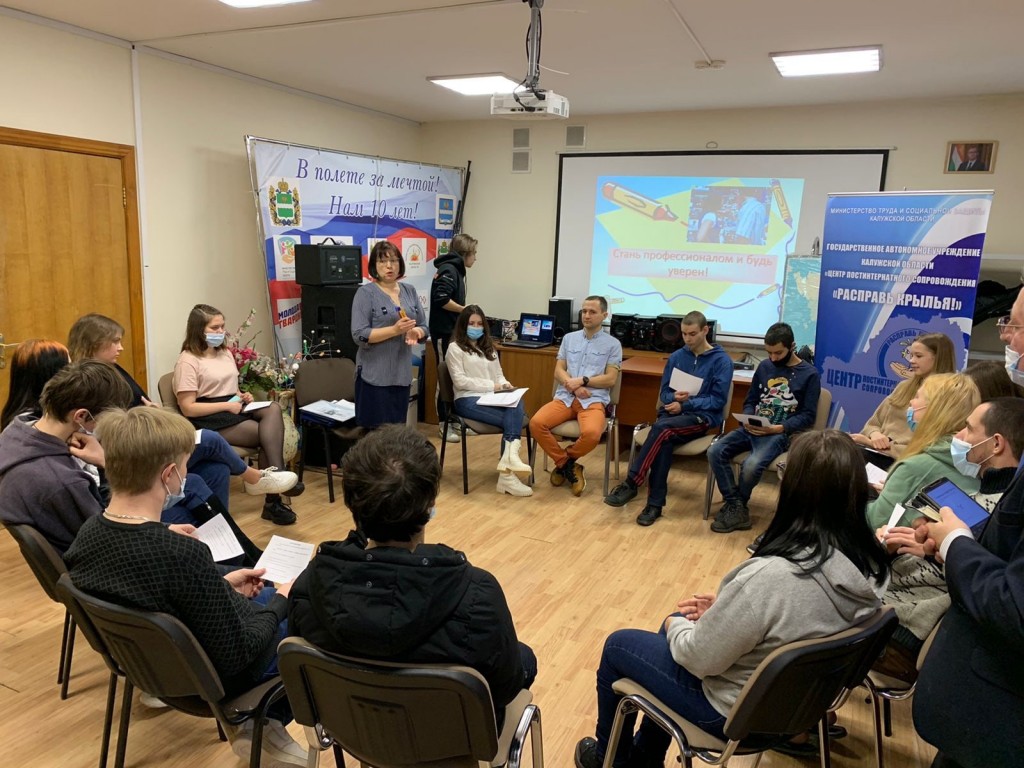 В рамках выполнения государственного задания специалисты центра предоставляют социальные трудовые услуги.На базе «Центра постинтернатного сопровождения "Расправь крылья!" в рамках направления «Достойная работа» прошла встреча выпускников из числа детей-сирот с начальником отдела профессиональной ориентации, соцадаптации и профобучения Ершовой Юлией Викторовной ГКУ ЦЗН г. Калуги. Ребята с интересом слушали интерактивную лекцию "Трудовая деятельность - необходимое условие самостоятельной жизни". В ходе беседы были рассмотрены такие вопросы как:
