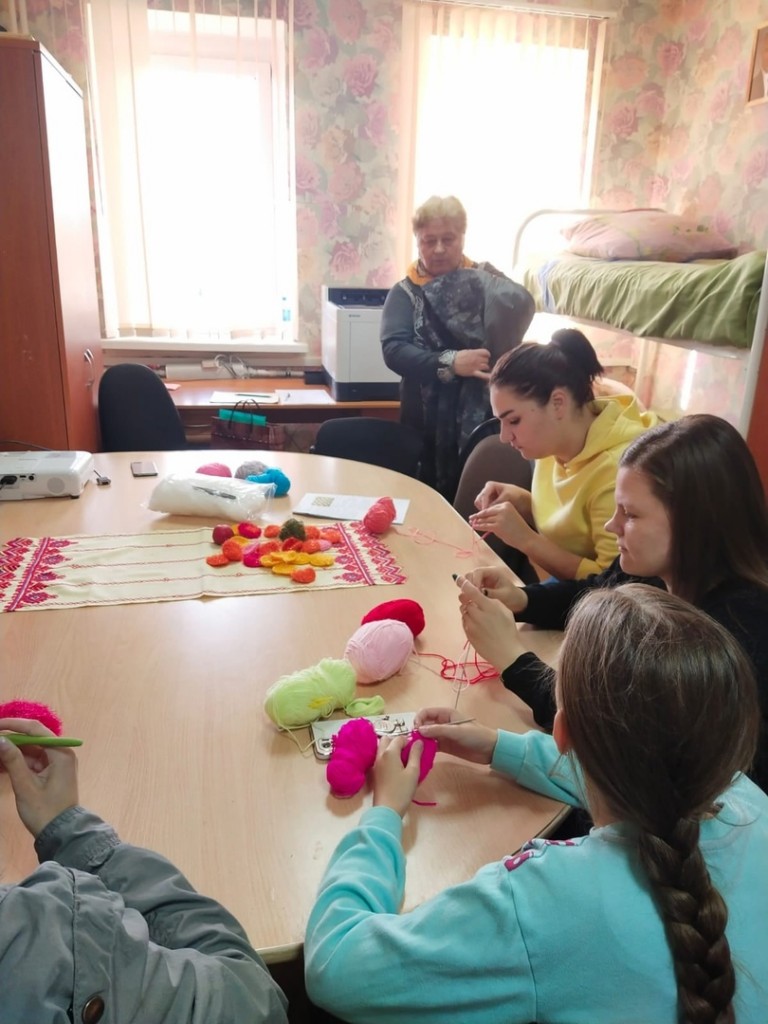 Изба - читальня набирает обороты в кружок по вязанию. Любители вязания не только вяжут, но и участвуют в мероприятиях центра. Старшее поколение с удовольствием делится своим опытом со студентами, молодыми семьями и ребятами, которые проживают в отделении социальной гостиницы центра из числа детей сирот. Присоединяйтесь к нашим творческим мастер-классам. Творческая лаборатория может вам помочь найти новых друзей, приобрести навыки вязания, в не формальной обстановке можно получить ответы на различные вопросы.