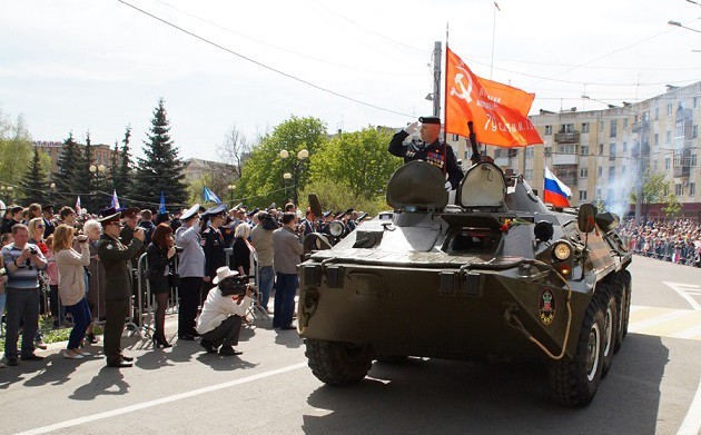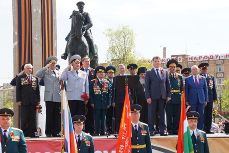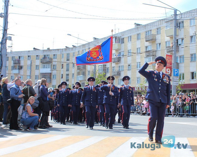9 мая, под сопровождение духового оркестра, прошло торжественное шествие, со знамённой группой офицерского состава Калужского отдельского казачьего общества Центрального казачьего войска. Ребята показали высокую строевую выправку, этому способствовала двухмесячная тренировка под руководством руководителя проекта Головид Ивана Ивановича.