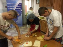 Итогом мастер-класса стало приготовление первого блюда – супа из лапши и курицы, второго блюда – плова, третьего блюда – компота из яблок и слив.