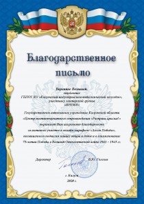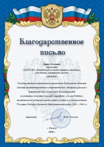 Мы благодарим вас за проявленную активность в мероприятии Центра, посвященного 75-летию Великой Победы и подготовили для Вас благодарственные письма.