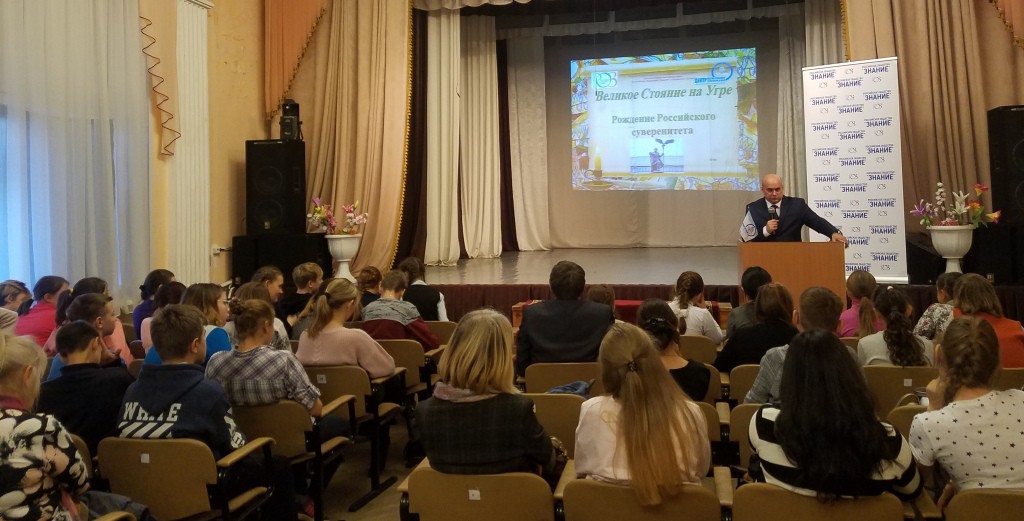 25.10.2018 года на базе Городского досугового центра города Калуга, лекторской группой Центра «Расправь крылья!» в составе - заместителя директора по территориальному сопровождению Ивана Головида и психолога Марии Серегиной, для молодежи в рамках оказания социально-педагогических услуг проведено просветительское занятие «Великое стояние на реке Угре».