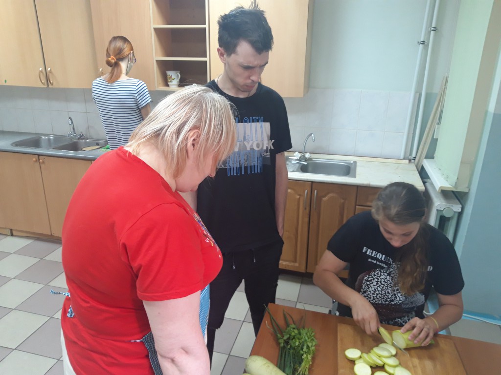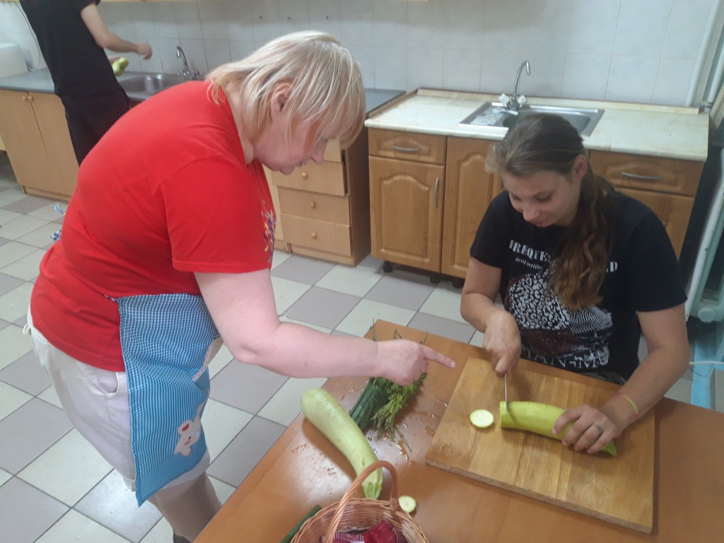 Для проживающих в социальных квартирах на базе ГАУ КО «Центр постинтернатного сопровождения «Расправь крылья!» прошел мастер-класс по кулинарии. Выпускники продолжают учиться готовить простые и полезные блюда. Кабачки – это полезный овощ и популярный ингредиент. А мы готовили вкусные биточки. Кабачки, чеснок, петрушка, укроп покупать не пришлось, так как все это ребята вырастили сами на участке центра в рамках проекта «Сад и огород». Здоровое питание, натуральные продукты, сбалансированный рацион — это то, что будет у них в достатке, как результат их труда на участке. Мастер-класс прошел весело и интересно!