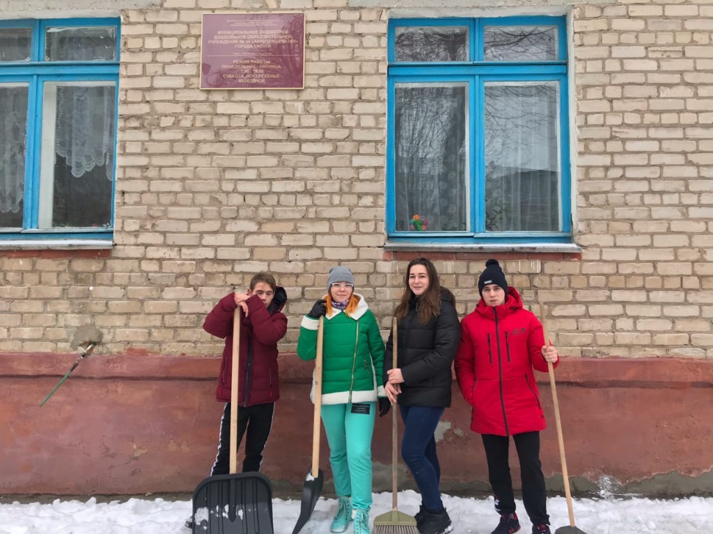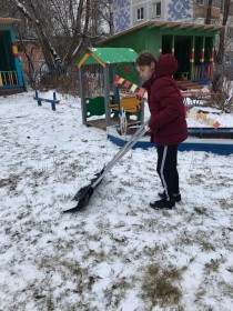 Участники клуба выпускников «Вместе» сделали ещё одно доброе дело. В этот раз они расчистили от снега место для игры малышам у детских веранд. Заодно и размялись – ведь все они активно занимаются спортом, и физические нагрузки молодому организму только на пользу.