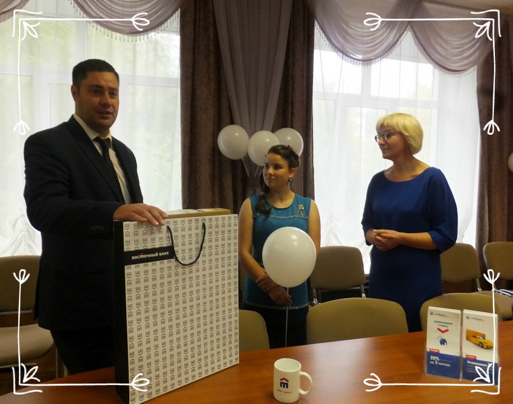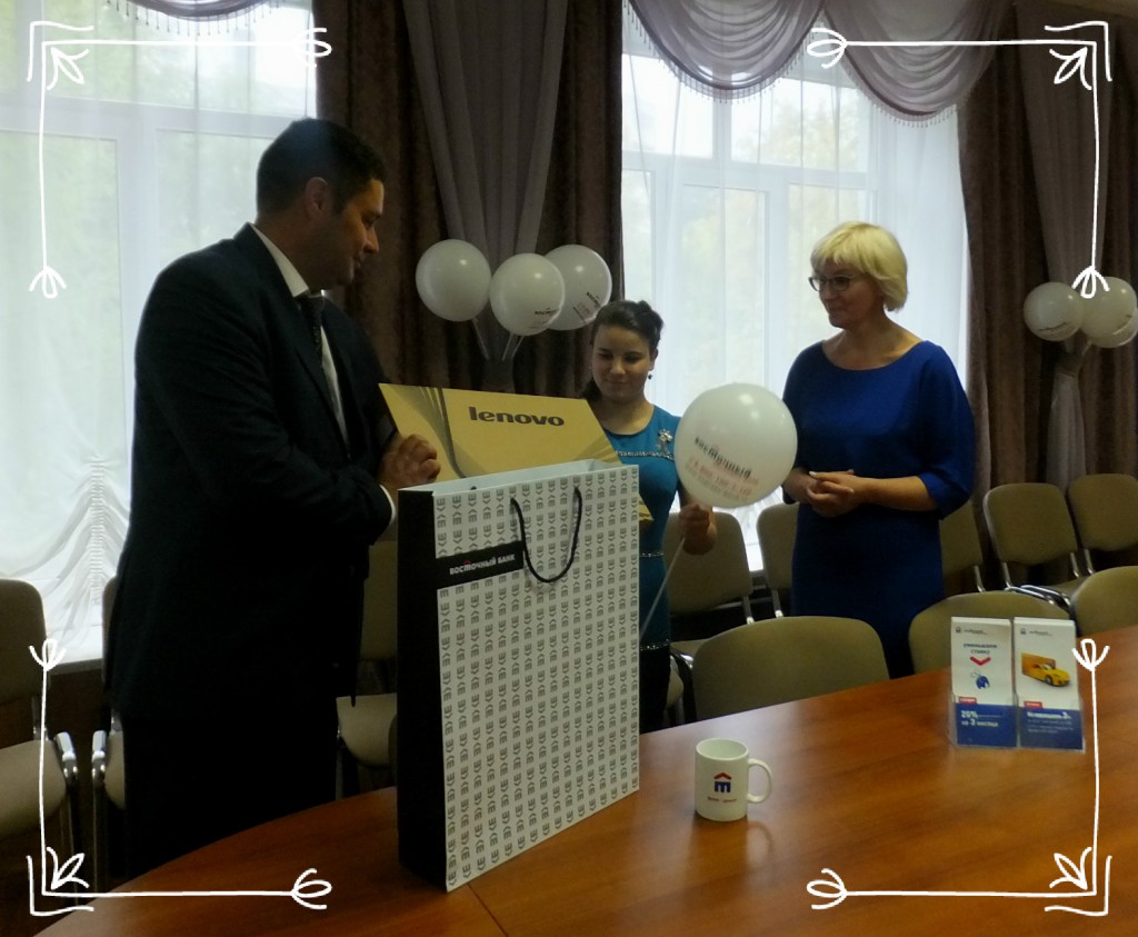 При поддержке фонда «Восточный» управляющий «Восточным экспресс банком» по г. Калуге Смирнов Павел Валерьевич встретился с Лазутиной Дарьей, выпускницей Людиновской школы- интерната, чтобы подарить ей ноутбук.