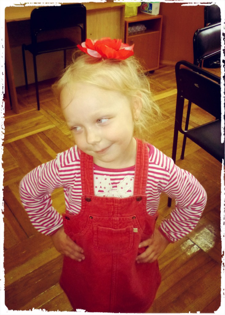 Руководитель Е.П. Требина научила этой технике Анастасию Соколову. В результате появилась необыкновенной красоты заколка, которую тут же прикрепила маленькая Сонечка. Настоящая принцесса. Но Насте пришлось очень потрудиться, научиться пользоваться выжигательным аппаратом, чтобы получилось такое чудо.