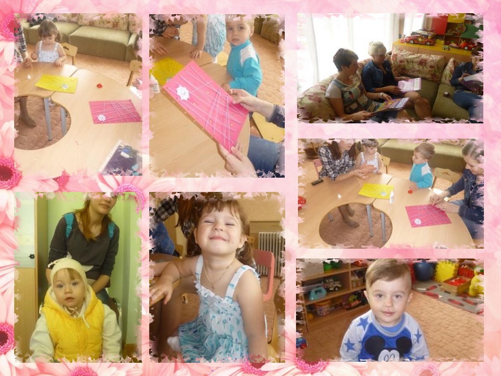 Детишки вместе с мамами делали домик для паучка. Нетрадиционное занятие с ниткой для развития моторики так увлекло мам, что деткам досталось только закрепить все ниточки. Подобное занятие возникло не случайно. Молодые мамы совсем не знали, как пользоваться развивающими игрушками. Шнуровка - замечательный подарок малышу. Задача игры - прикрепить различные детали к основной фигуре, прошнуровав их и закрепив узелками. Это увлекательное занятие не только развлечет ребенка, но и поможет развить ему очень важные навыки: мелкую моторику рук и координацию движений.