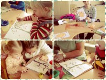 На другом занятии дети рисовали листопад способом «примакивания». Педагог провел консультации для мам на темы: «Что нужно читать детям», «Учим замечать прекрасное». Полинка Дашина, которая решилась после праздника летних именинников посещать занятия, никак не хотела уходить с занятий. Гордая, держа в руках поделки, пошла домой. Мама сказала, что теперь всегда будут приходить к нам. До новых встреч! Мы рады видеть у себя Вас, милые мамы и детки!
