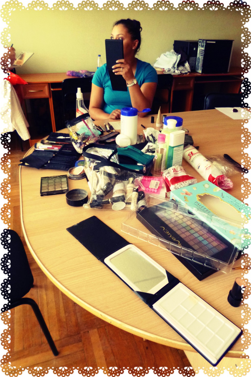 Посмотрите, какие необыкновенные молодые мамы в нашем проекте. Ирина Бауэр очень ответственно относится к посещению занятий. 11 июля у нее состоится венчание. Она очень хочет быть самой красивой для своих членов семьи, каждый раз подбирает макияж, сравнивает, консультируется с руководителем курса.
