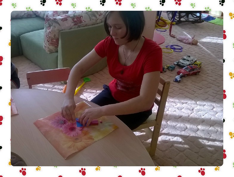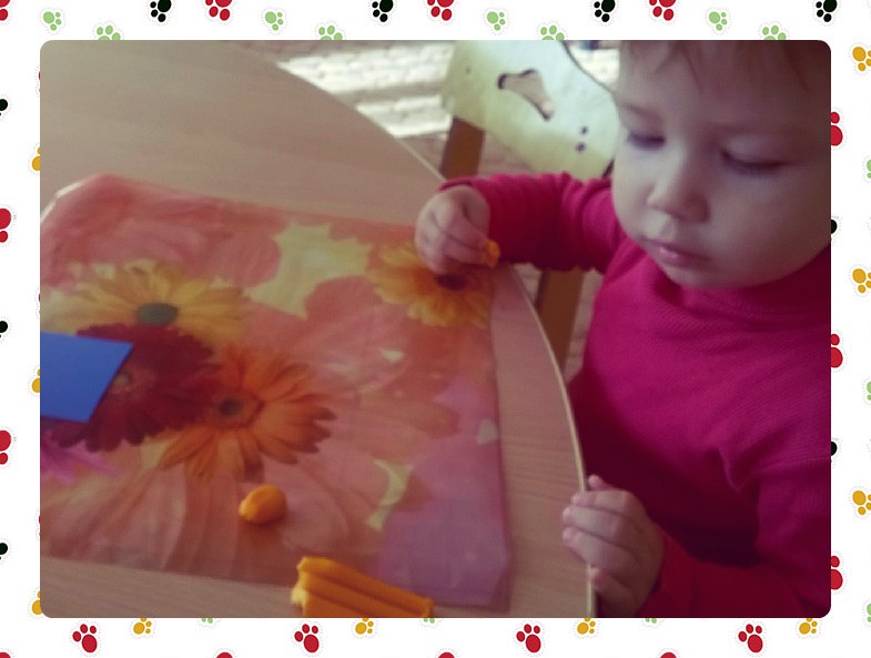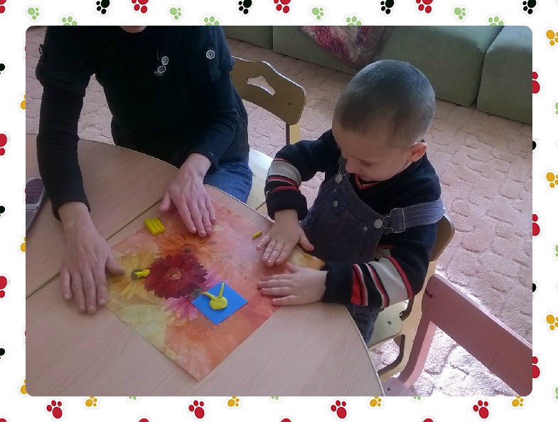 А на следующем занятии дети расширяли словарный запас (какое время года, признаки осени и т. д.). Педагог раздала пластилин и предложила слепить солнышко, чтобы стало «теплее». Дети выбирали цвет пластилина по желанию. С таким удовольствием показывали мамам, всем, кто пришел в этот день в Центр.