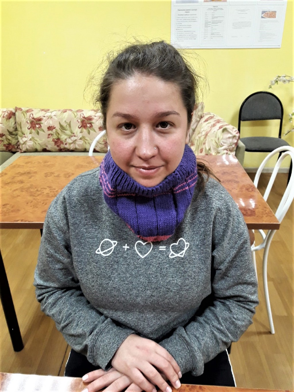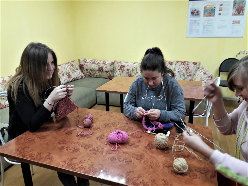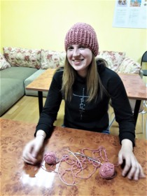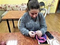 Вязание крючком или спицами — приятное хобби для многих девушек, проживающих в социальной гостинице Центра «Расправь крылья!». Освоить эту деятельность молодым девушкам помог наш специалист Елена Дмитриевна Попова. Девочки получили на выходе и интересный результат своей работы. Шапочка и носочки для малыша от мамочки Ани: начало вязания двойной резинкой, сама шапочка выполнена английской резинкой и низ шапочки с завязочкой - резинка 1х1. Ксения научилась вязать хомут. Лида связала себе шапку вкруговую, без шва.